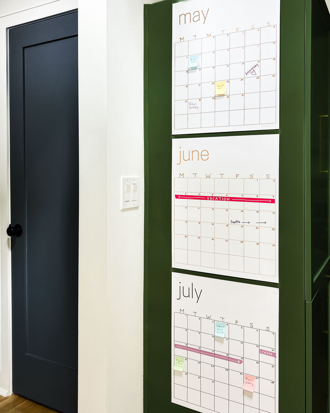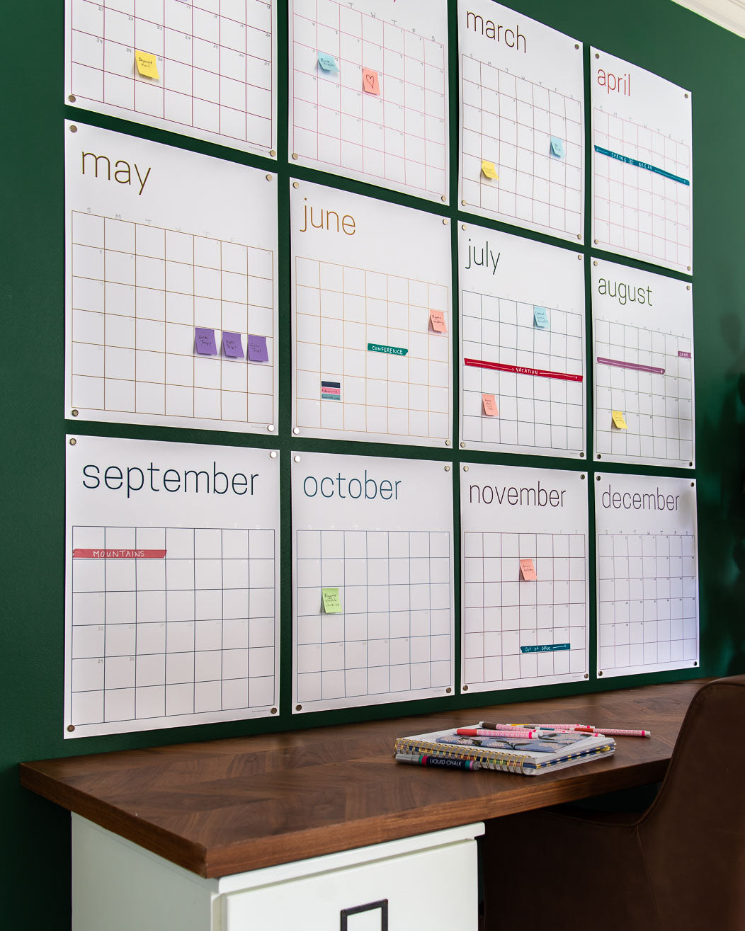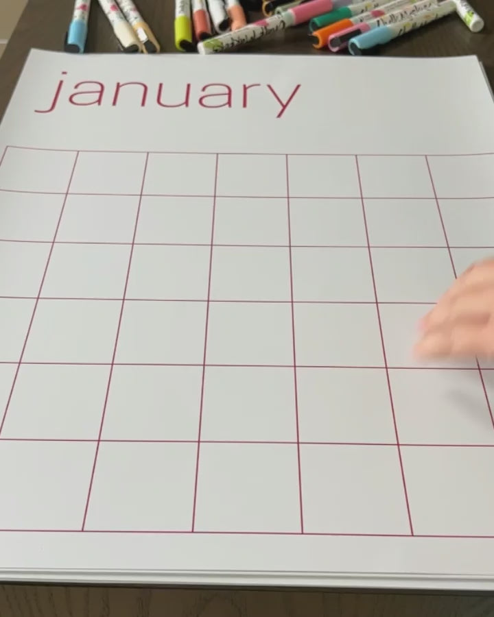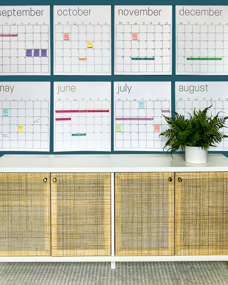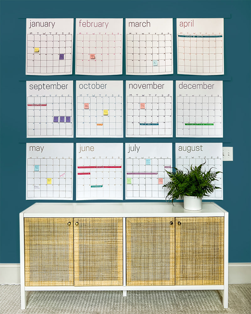 If you love the idea of a large wall calendar, but prefer a white background and less vibrant colors, this is for you! The colors used for the text and grids are more earthy and muted than our colorful rainbow calendar--and they look beautiful against the white background 😍 And since it's single-use, you can write on it with any markers your heart desires! IMPORTANT: This is a single-use calendar. It is NOT erasable or reusable like our other large wall calendars! If you prefer a reusable calendar, check out our reusable wall calendars.