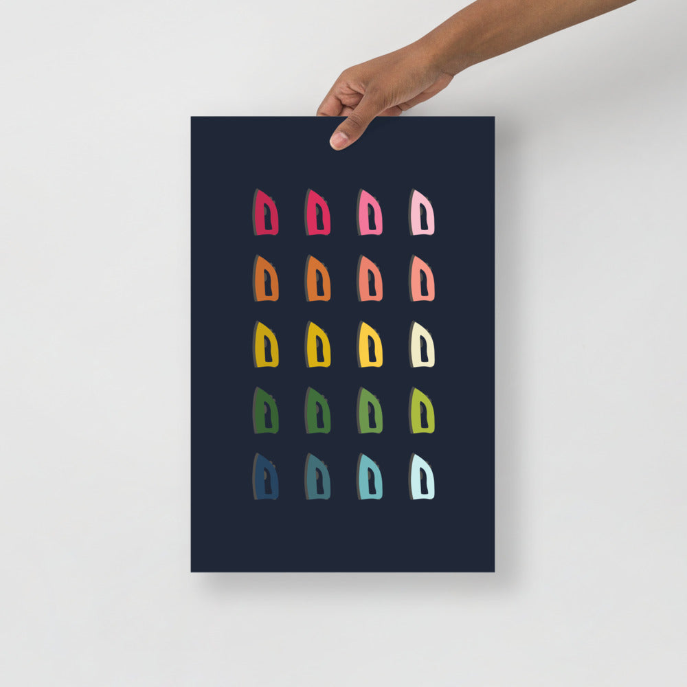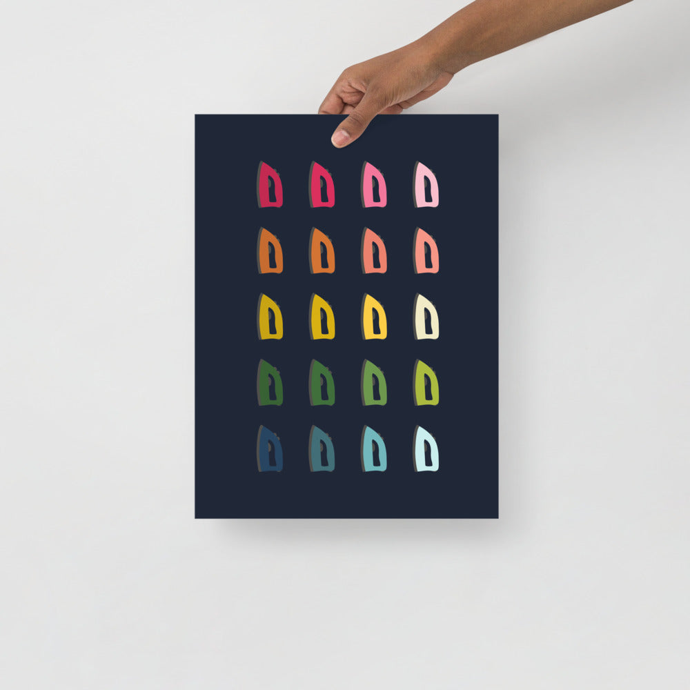 Brighten up your laundry room with this fun and colorful irons art! The colors pop beautifully off the navy blue background. These museum-quality posters are printed on thick and durable matte paper.