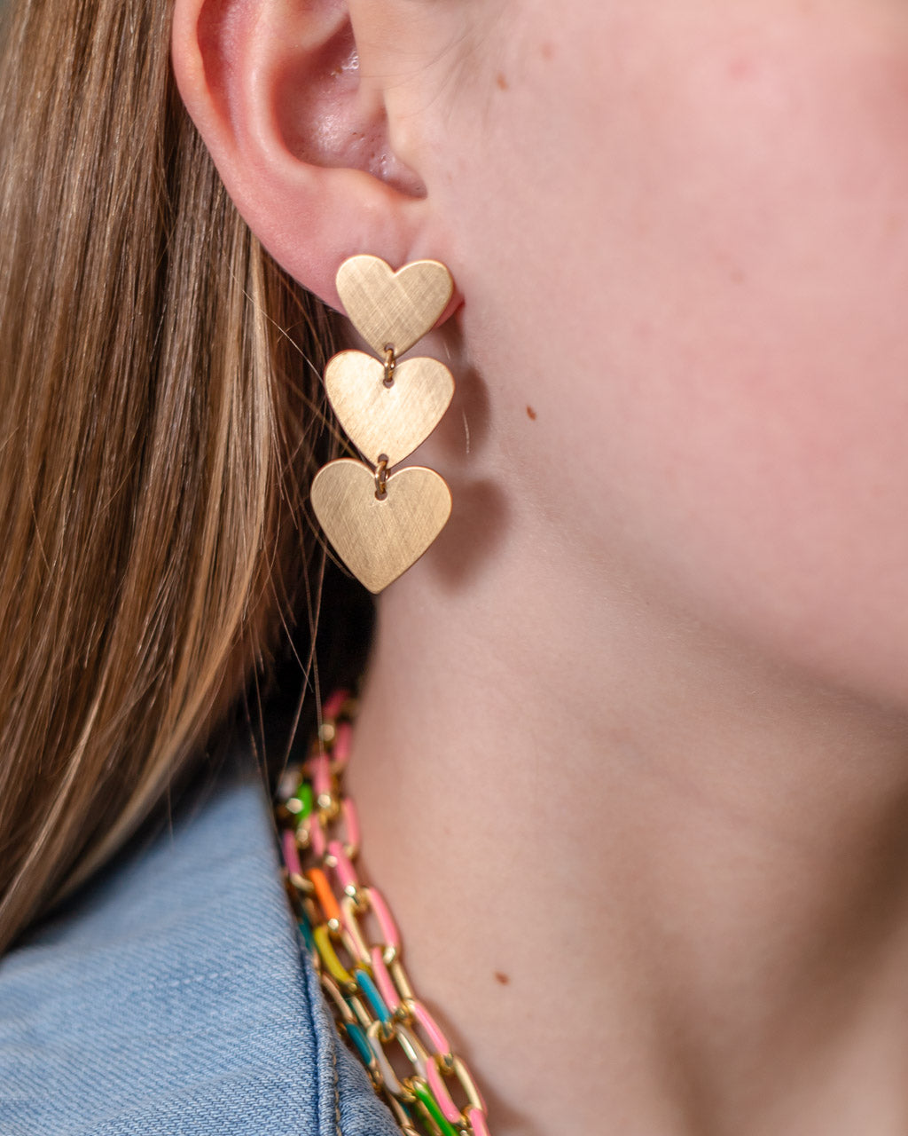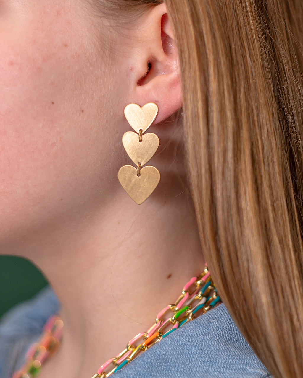These triple-heart drop earrings can be dressed up or down. They are approximately 1.5" long.