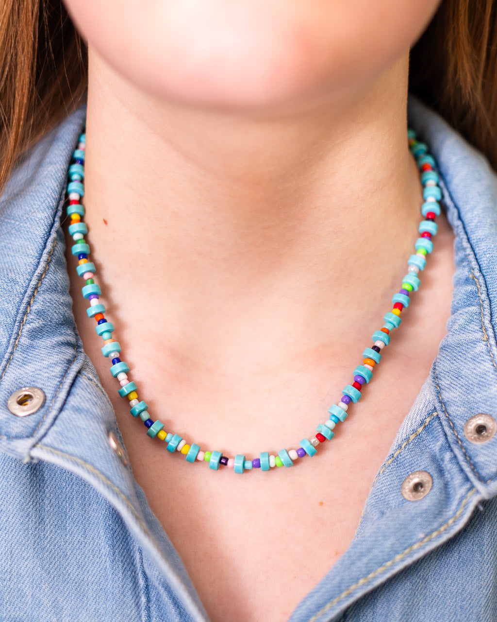 This is the perfect necklace for anyone who loves turquoise stones and colorful jewelry! The genuine turquoise stone beads may steal the show, but the colorful spacer beads are the perfect supporting characters.