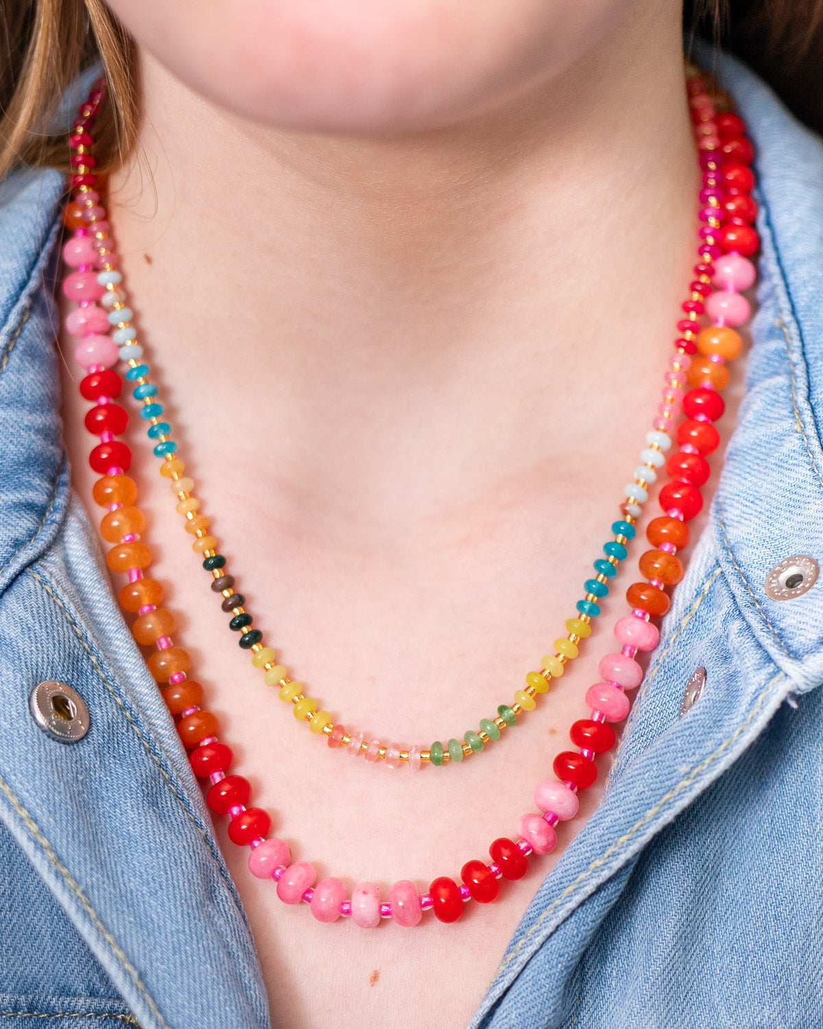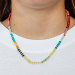 Delicate yet full of natural beauty, our Vibrant Whisper features petite natural stone beads in vibrant sunset hues for an effortlessly lightweight feel. Designed for versatility, this dainty piece is perfect for layering or wearing solo.