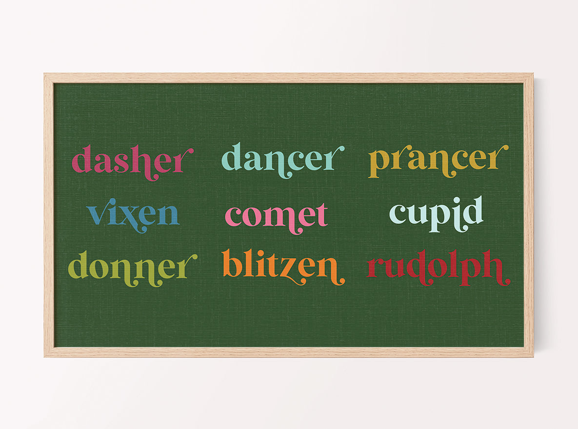 This Colorful Reindeer Digital TV Art | Colorful Holiday Frame TV Art is the perfect way to add Christmas cheer to your TV! Features beautiful colors and texture. It's available in 4 different colorways. Please note that each color is sold separately.