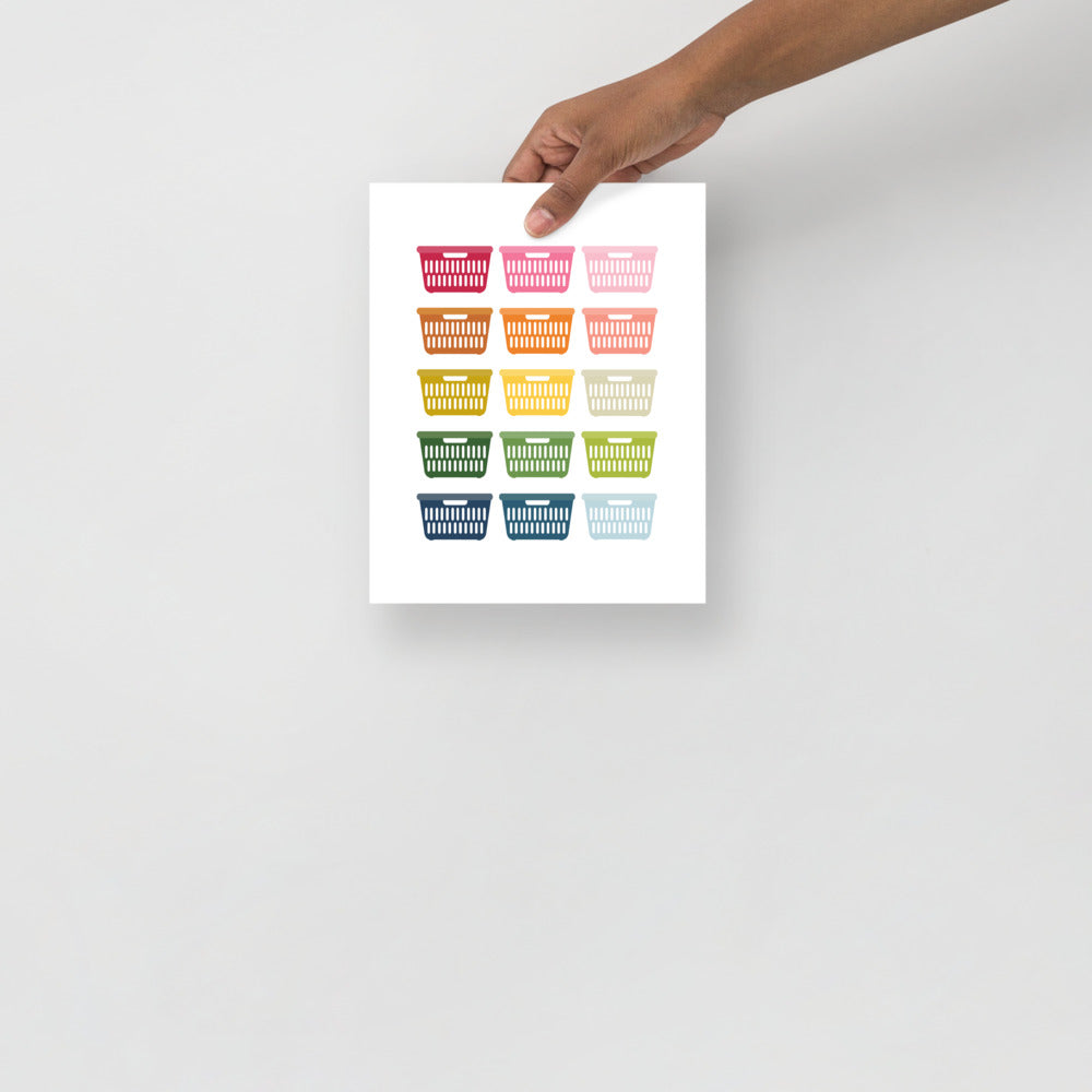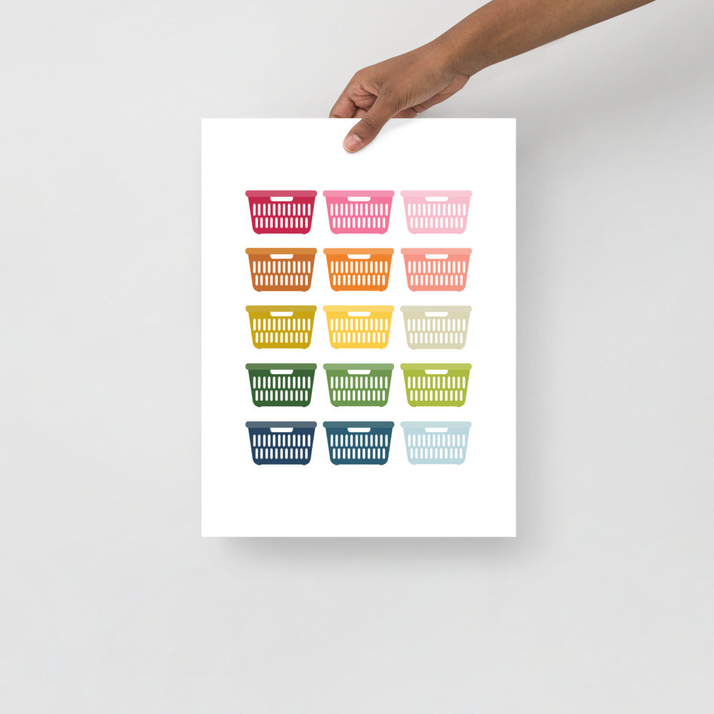 Brighten up your laundry room with this fun and colorful laundry baskets art! The colors pop beautifully off the white background. These museum-quality posters are printed on thick and durable matte paper.